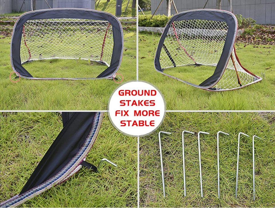 ⚽Bodennägel fixieren, stabiler: Es gibt auch 4 Bodennägel, um das Fußballtor besser zu befestigen, ein stabileres Fußballnetz, um hartes Schießen zu ertragen.