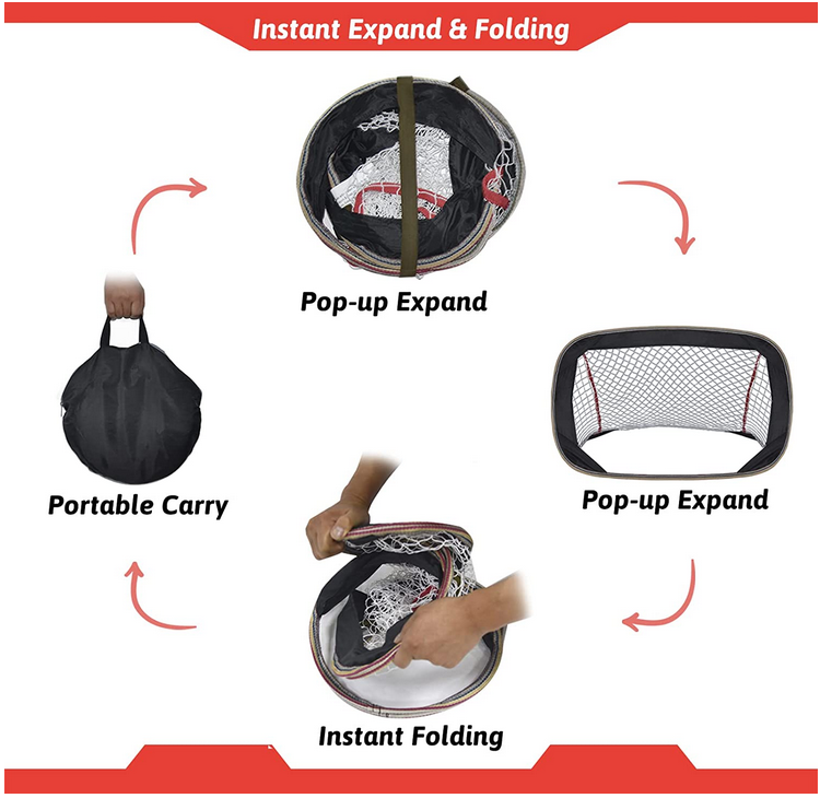⚽Sofortiges Pop-Up-Fußballtor zum schnellen Zusammenbauen und Zurückklappen: Das spezielle Pop-Up-Fußballtor-Design, mit dem das Fußballnetz schnell aufgebaut und innerhalb von 5 Minuten ohne die erforderlichen Werkzeuge zurückgeklappt werden kann.